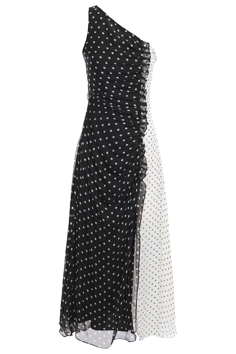 polka-dot silk-chiffon midi dress white one shoulder pleated detail midi dress