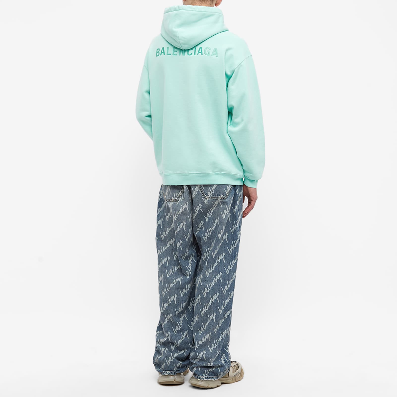 Balenciaga Embroidered Back Logo Popover Hoody Mint | END. (US) balenciaga back logo hoodie