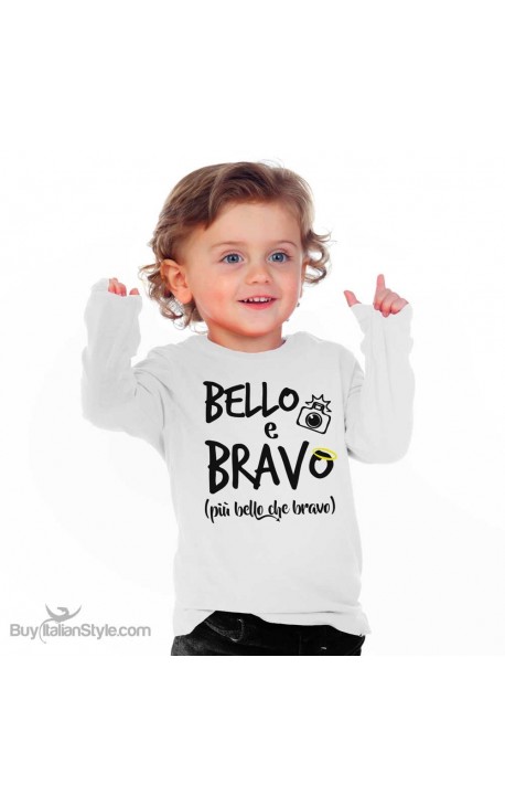 Maglietta simpatica per bambini e neonati con stampa Bello e bravo magliette per bambini con scritte simpatiche